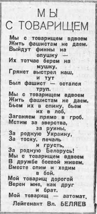 Источник: Беляев Вл. Мы с товарищем // Смена. 1942. 31 июля. № 92. С. 2. |